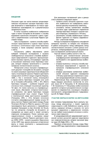 Статья: ИЗОБРАЖЕНИЕ ЧУДЕС В СОЧИНЕНИИ ПЕРВОГО КРЕСТОВОГО ПОХОДА «CONQUÊTE DE JÉRUSALEM» (2025)