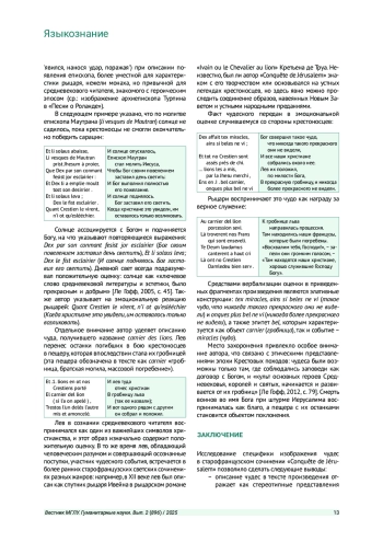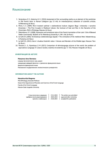 Ключевые фразы: диахронические исследования, средства выражения оценки, изображение чудес, кодекс чести рыцаря, старофранцузская поэма эпохи крестовых походов