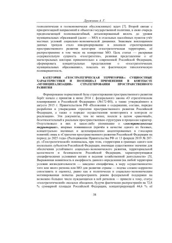 В современной России пространственное развитие и вопросы его стратегирования предельно актуализированы, выступая приоритетом в том числе для общественной географии. Реализация императивов полномасштабного, детализированного учёта местных условий социально - экономической динамики, а также приоритезации направлений государственной и корпоративной активности предполагают «муниципализацию» исследовательских подходов в увязке с идентификацией геостратегических интересов страны и соответствующей типологизацией территорий.