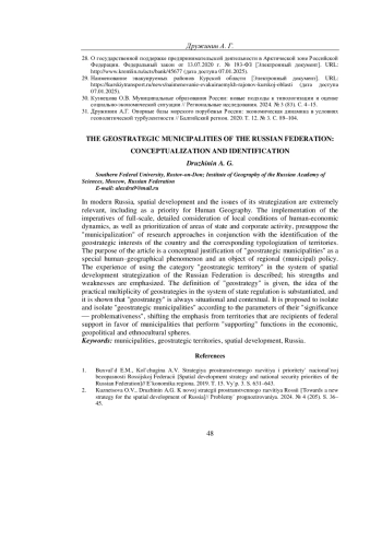 7. Дружинин А.Г. Геополитические ориентиры стратегии пространственного развития России // Федерализм. 2024. Т. 29. № 4 (116). С. 5-22. EDN: PGMPSR