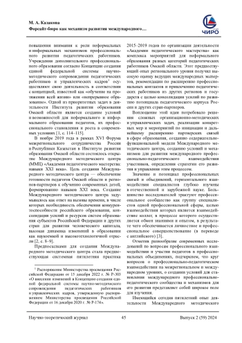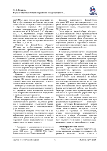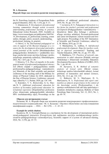 КАЗАКОВА М. А. ФОРСАЙТ-БЮРО КАК МЕХАНИЗМ РАЗВИТИЯ МЕЖДУНАРОДНОГО ПРОФЕССИОНАЛЬНО-ПЕДАГОГИЧЕСКОГО ВЗАИМОДЕЙСТВИЯ // НАУЧНОЕ ОБЕСПЕЧЕНИЕ СИСТЕМЫ ПОВЫШЕНИЯ КВАЛИФИКАЦИИ КАДРОВ. 2024. № 2 (59)