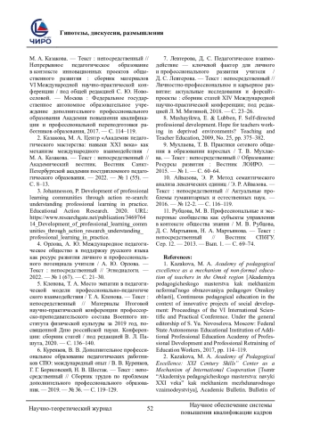 Журнал: НАУЧНОЕ ОБЕСПЕЧЕНИЕ СИСТЕМЫ ПОВЫШЕНИЯ КВАЛИФИКАЦИИ КАДРОВ