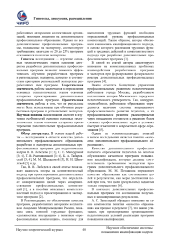 1. Лебедев, В. В. О дополнительных профессиональных программах повышения квалификации педагогических работников / В. В. Лебедев. - Текст: непосредственный // Школьные технологии. - 2018. - № 3. - С. 110-118. EDN: UYYTJS
