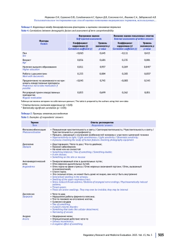 РЕЗУЛЬТАТЫ. Для некоторых медицинских терминов было выявлено завышение внутренней оценки понятности: респонденты считали термин понятным, но давали ему неверное определение. Всем протестированным терминам респонденты давали верное определение менее чем в 80% случаев; наиболее понятными терминами оказались «ринит» (66,1% оценщиков), «ангионевротический отек» (28,6%), «экзантема» (25,0%) и «анурия» (25,0%). Лица с высшим образованием, а также те, кто работает с документами, чаще давали правильное определение термину.