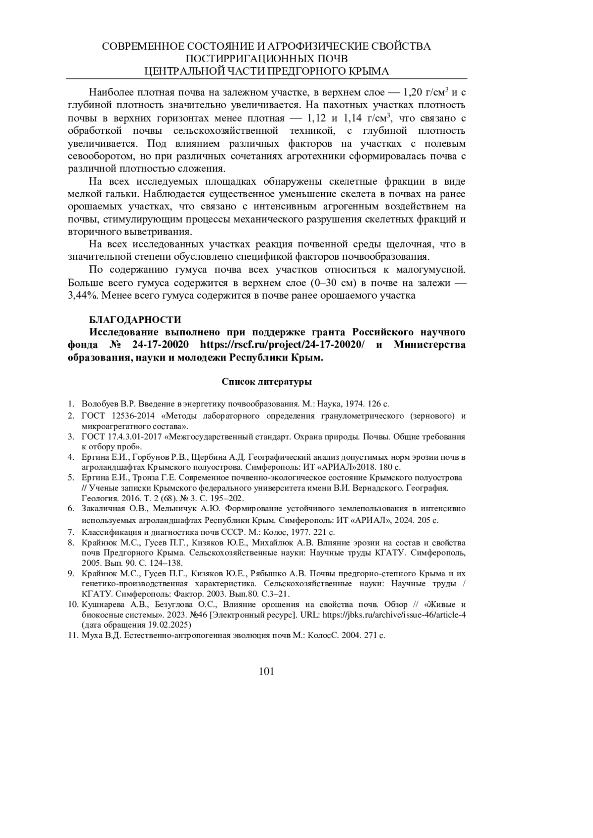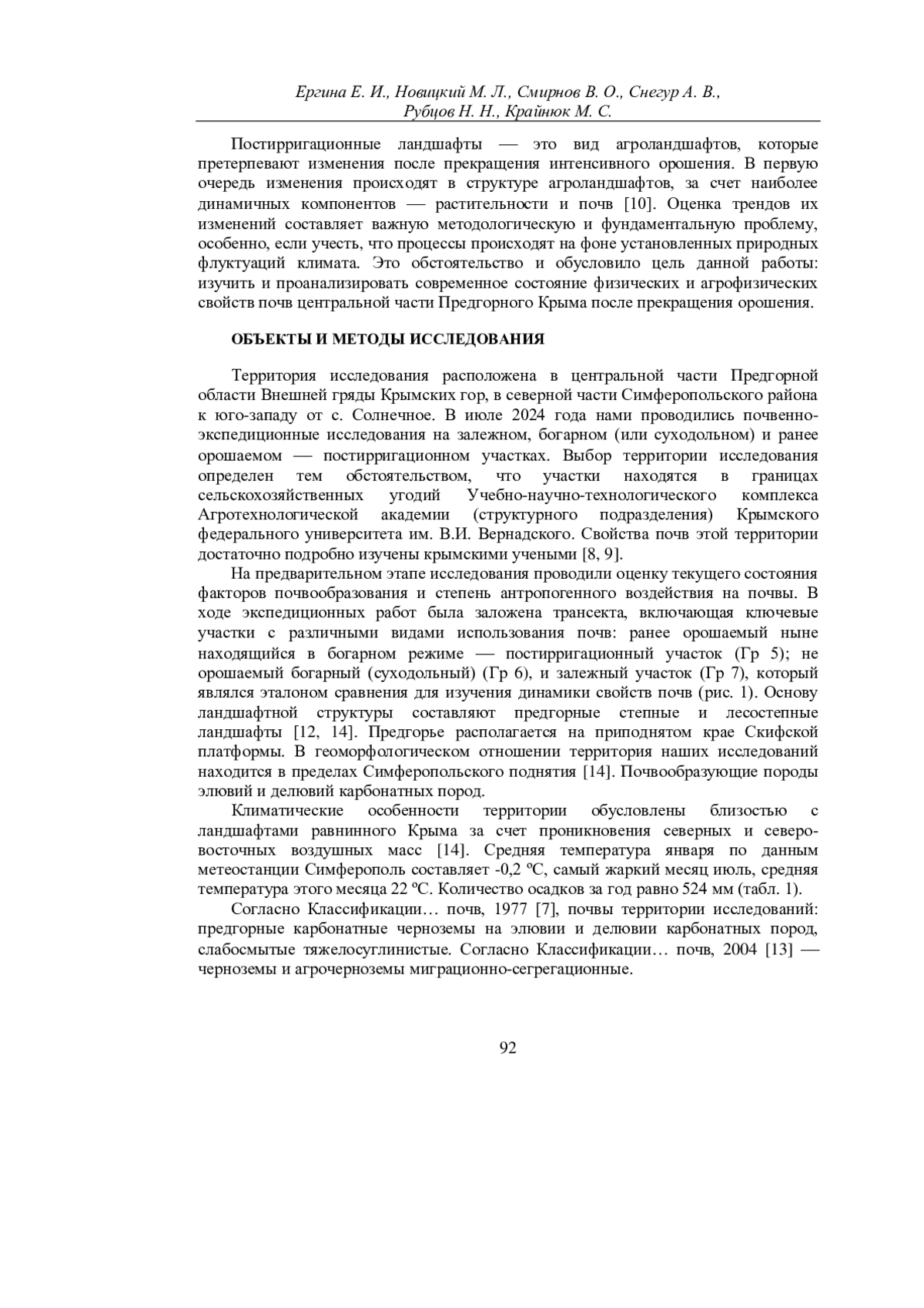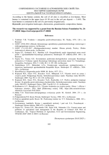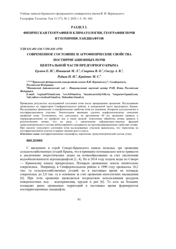 4. Ергина Е.И., Горбунов Р.В., Щербина А.Д. Географический анализ допустимых норм эрозии почв в агроландшафтах Крымского полуострова. Симферополь: ИТ “АРИАЛ”2018. 180 с. EDN: XUCAZN