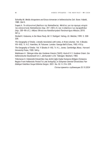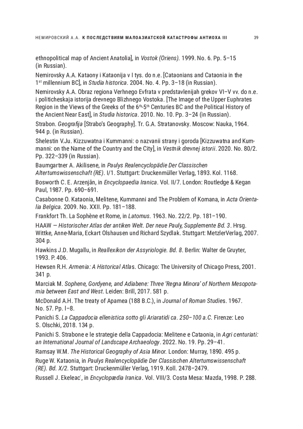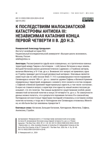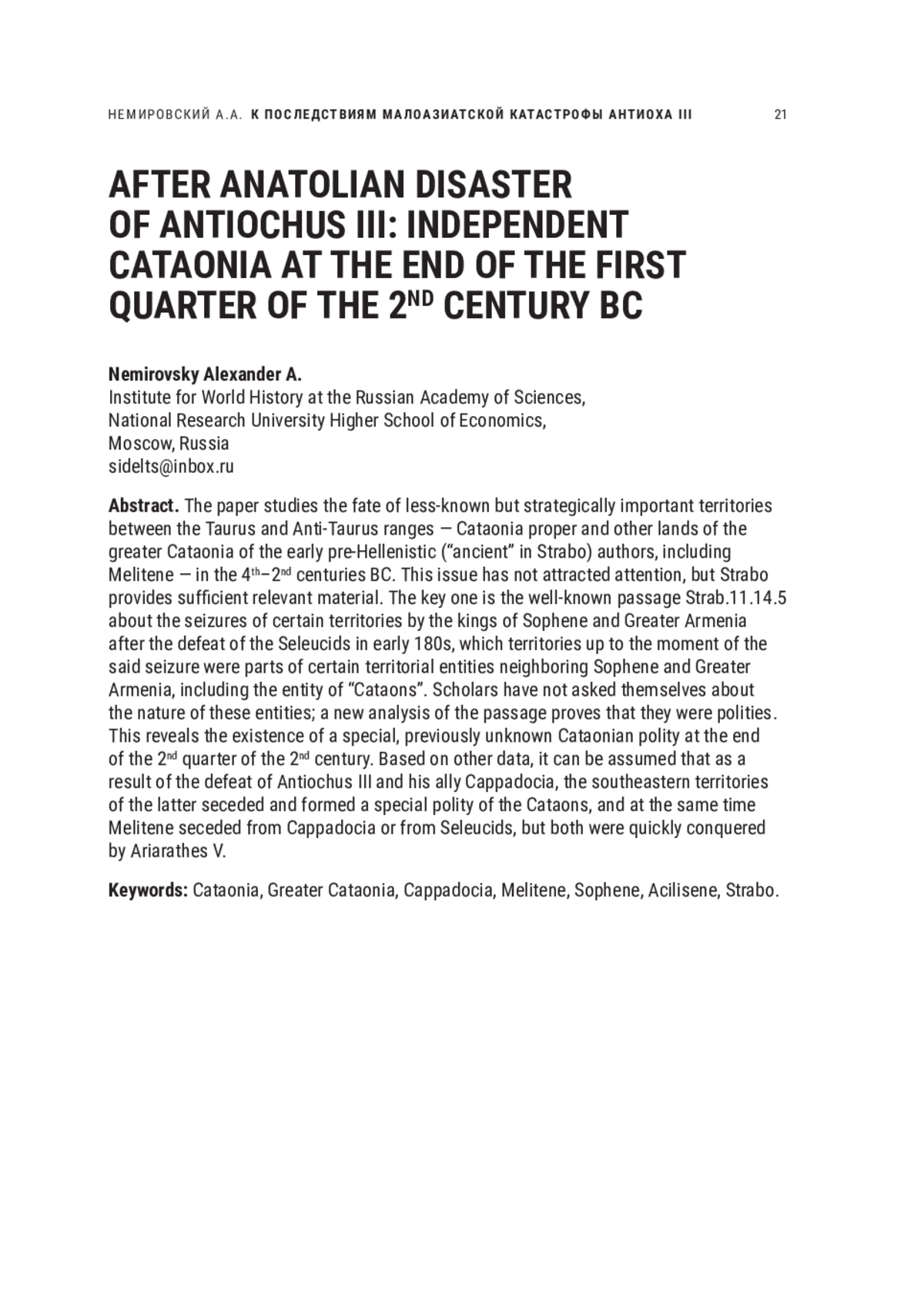 НЕМИРОВСКИЙ А. А. К ПОСЛЕДСТВИЯМ МАЛОАЗИАТСКОЙ КАТАСТРОФЫ АНТИОХА III: НЕЗАВИСИМАЯ КАТАОНИЯ КОНЦА ПЕРВОЙ ЧЕТВЕРТИ II В. ДО Н. Э // НОВОЕ ПРОШЛОЕ. 2024. № 4