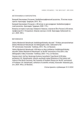 3. Вопросы истории и культуры Северного Кавказа, казачеств Юга России (к 85-летию профессора В.Н. Ратушняка): сборник научных статей. Краснодар: Кубанский гос. ун-т, 2024. 459 с.
