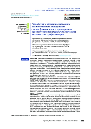 2. Феднина АС, Макарцева МГ, Курдюков ЕЕ, Моисеева ИЯ, Елистратов ДГ, Митишев АВ. Современное состояние исследований химического состава некоторых представителей рода Fagopyrum. Вопросы биологической, медицинской и фармацевтической химии. 2023;26(9):3-11. DOI: 10.29296/25877313-2023-09-04