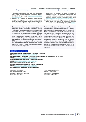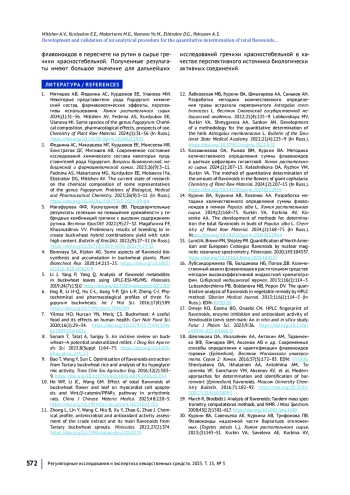 13. Калашникова ОА, Рыжов ВМ, Куркин ВА. Методика количественного определения суммы флавоноидов в цветках цефалярии гигантской. Химия растительного сырья. 2024;(2):207-15. DOI: 10.14258/jcprm.20240212969