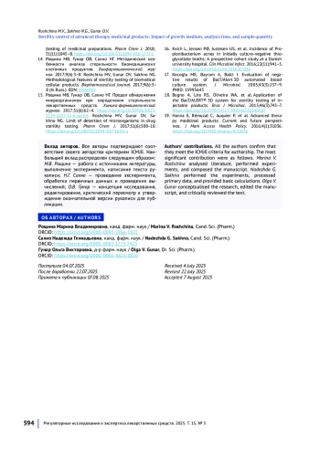 15. Рощина МВ, Гунар ОВ, Сахно НГ. Предел обнаружения микроорганизмов при определении стерильности лекарственных средств. Химико-фармацевтический журнал. 2017;51(6):62-4. DOI: 10.30906/0023-1134-2017-51-6-62-64