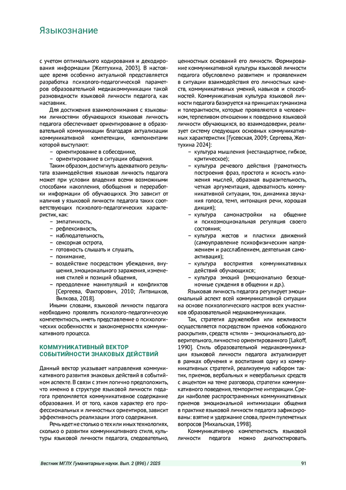 19. Сергеева О. В., Желтухина М. Р. Лингвопрагматика языковой личности педагога: монография. М.: ИНФРА-М, 2024. EDN: QMOAUW
