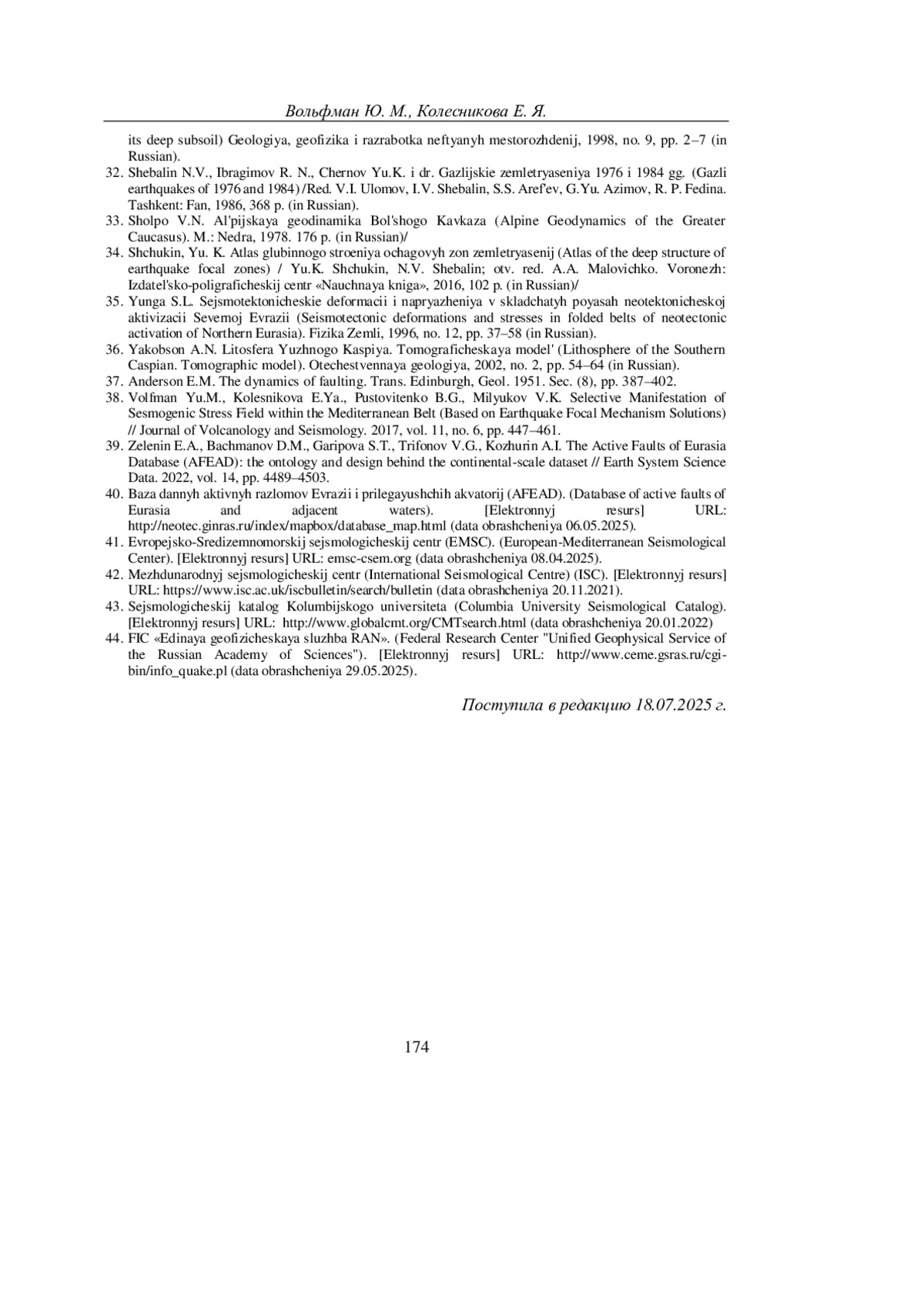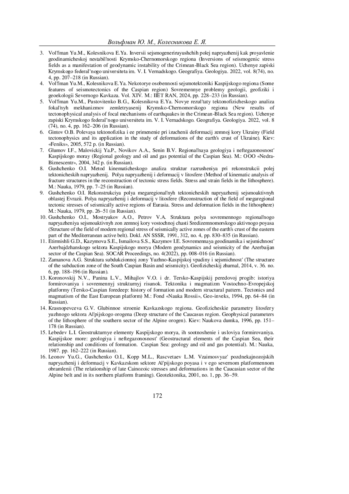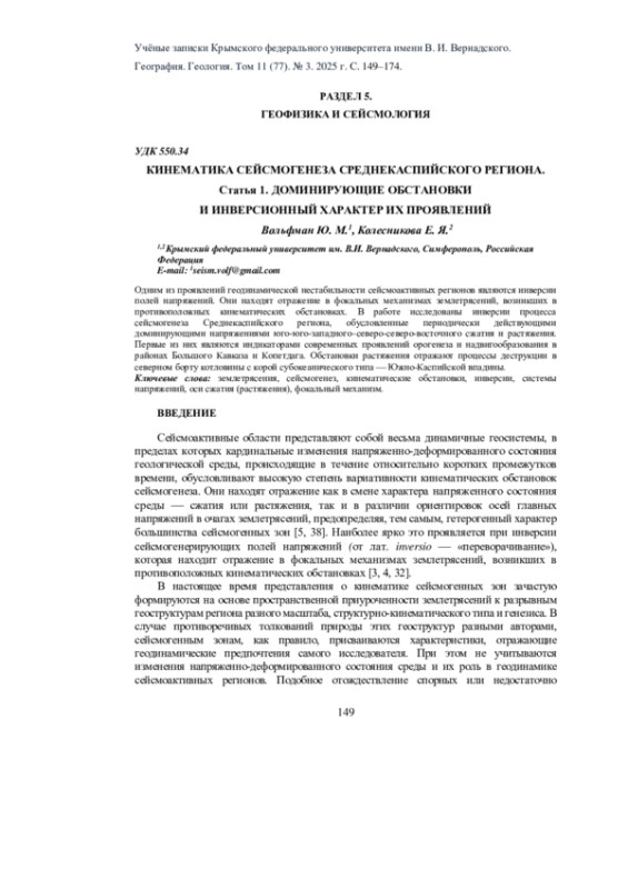 4. Вольфман Ю.М., Колесникова Е.Я. Некоторые особенности сейсмотектоники Каспийского региона // Современные проблемы геологии, геофизики и геоэкологии Северного Кавказа. Том XIV. М.: ИИЕТ РАН, 2024. С. 228-233.