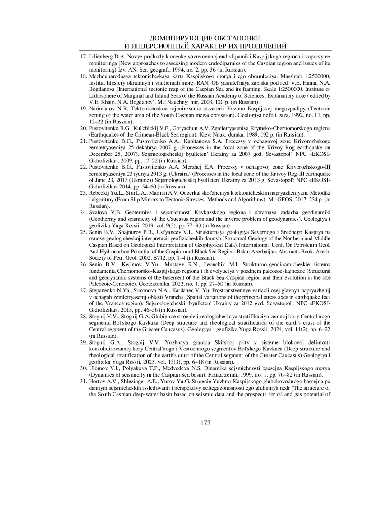 29. Стогний Г.А., Стогний В.В. Южная граница Скифской плиты в системе блоковой делимости консолидированной коры Центрального и Восточного сегментов Большого Кавказа. Геология и геофизика Юга России. 2023. Т. 13(3). С. 6-18.