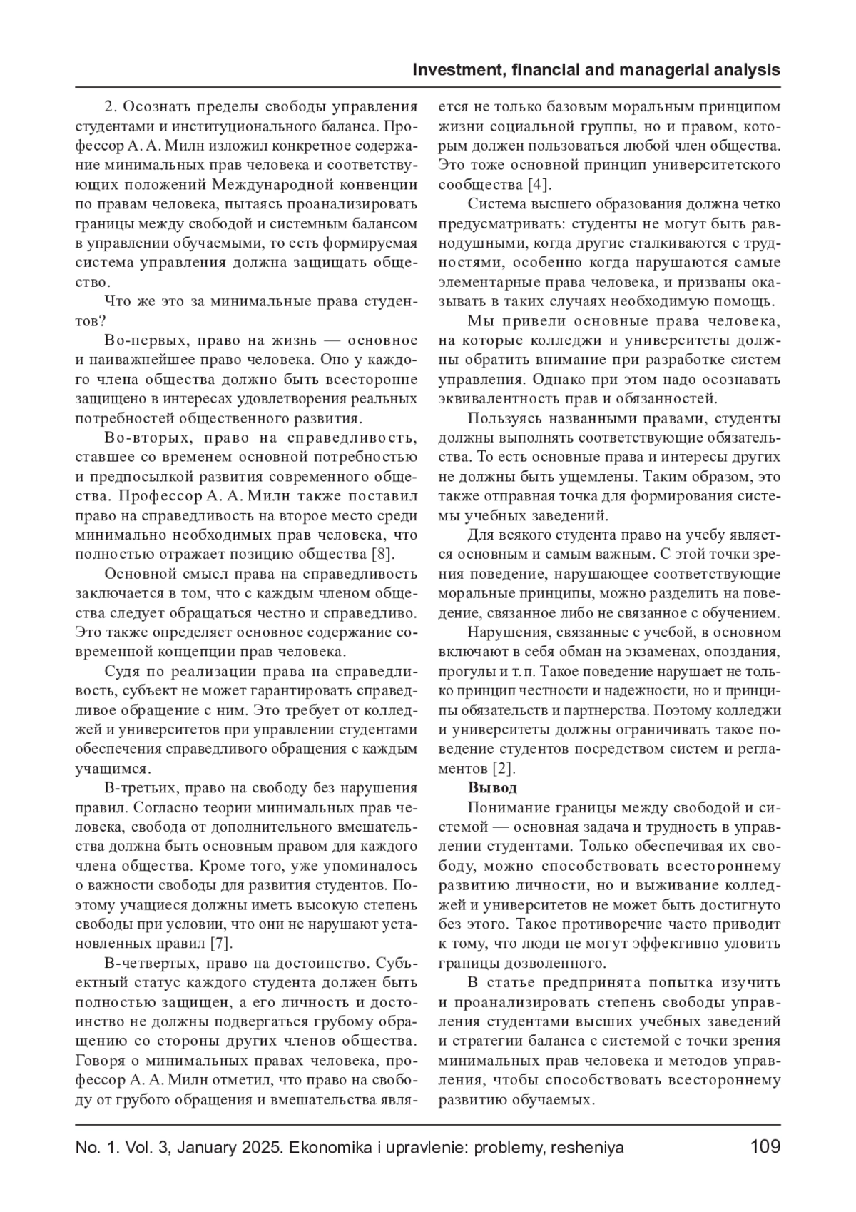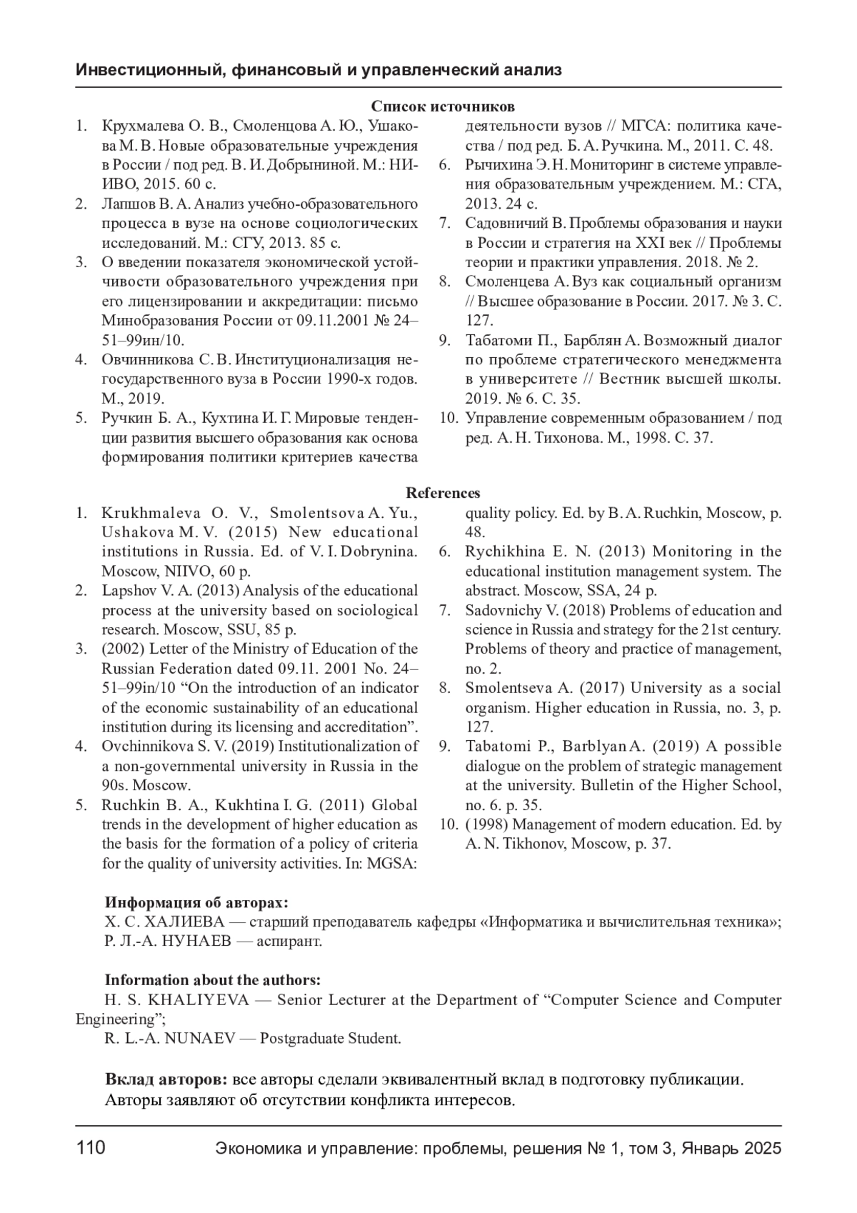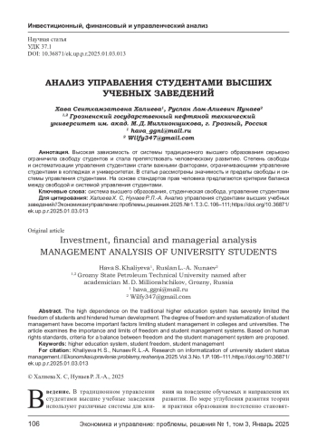 ХАЛИЕВА Х. С., НУНАЕВ Р. Л. АНАЛИЗ УПРАВЛЕНИЯ СТУДЕНТАМИ ВЫСШИХ УЧЕБНЫХ ЗАВЕДЕНИЙ // ЭКОНОМИКА И УПРАВЛЕНИЕ: ПРОБЛЕМЫ, РЕШЕНИЯ. 2025. ТОМ 3 № 1