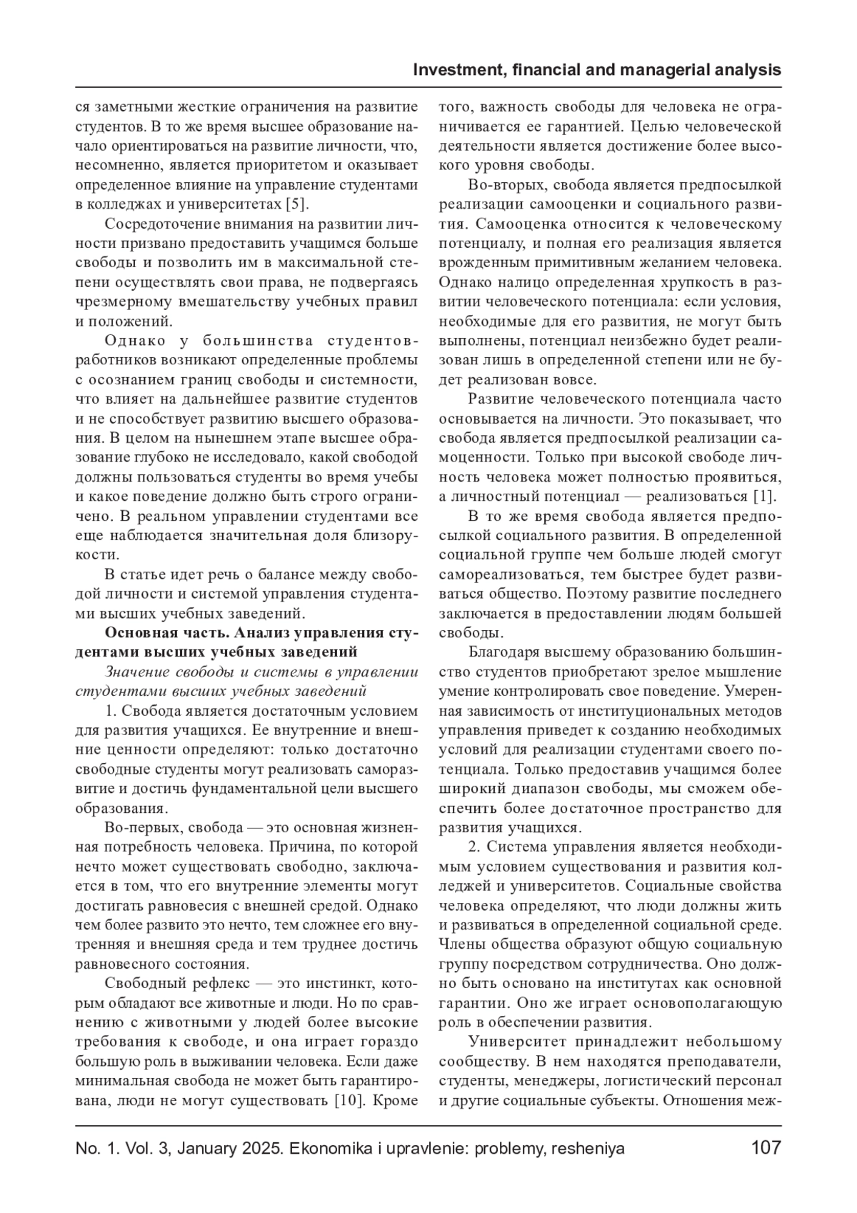 Статья: АНАЛИЗ УПРАВЛЕНИЯ СТУДЕНТАМИ ВЫСШИХ УЧЕБНЫХ ЗАВЕДЕНИЙ (2025)