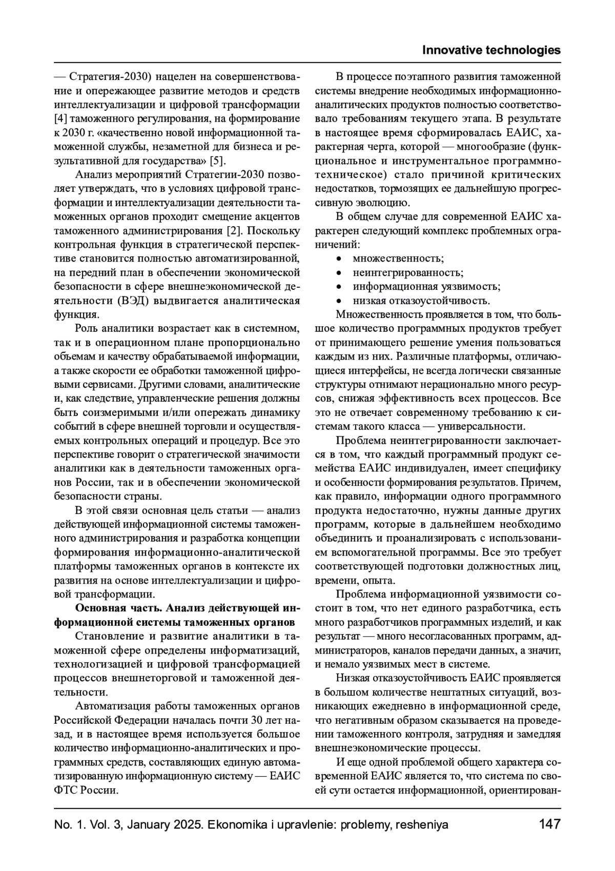 аналитической деятельности таможенных администраций: концептуальный и методический аспекты // Экономика и управление: проблемы, решения. 2024. № 12. Т. 1. С. 14-28. EDN: EGZNCP