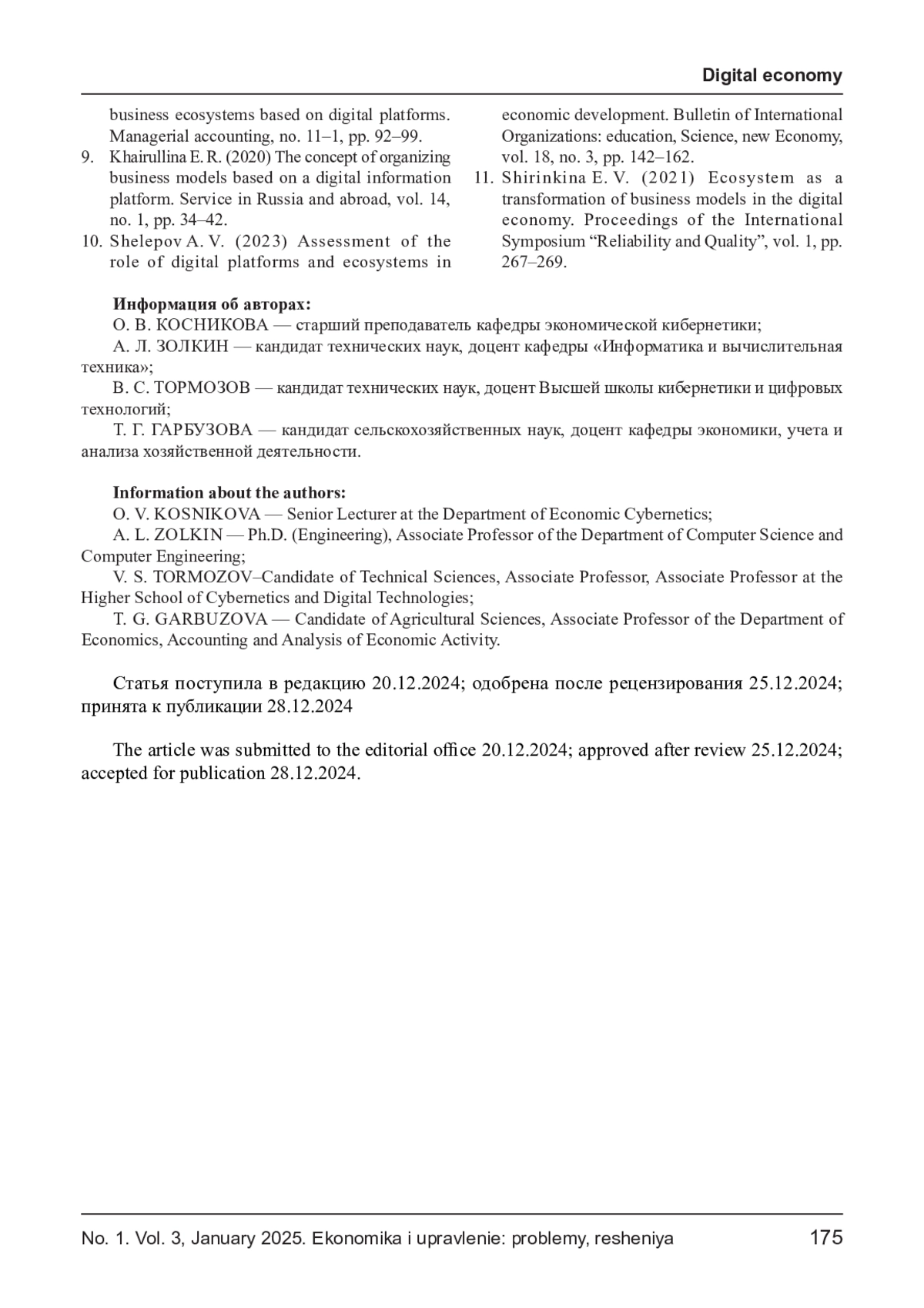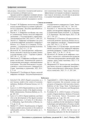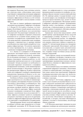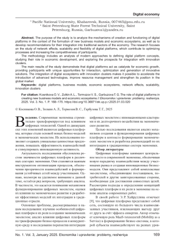 КОСНИКОВА О. В., ЗОЛКИН А. Л., ТОРМОЗОВ В. С., ГАРБУЗОВА Т. Г. РОЛЬ ЦИФРОВЫХ ПЛАТФОРМ В СОЗДАНИИ НОВЫХ БИЗНЕС-МОДЕЛЕЙ И ЭКОНОМИЧЕСКИХ ЭКОСИСТЕМ // ЭКОНОМИКА И УПРАВЛЕНИЕ: ПРОБЛЕМЫ, РЕШЕНИЯ. 2025. ТОМ 3 № 1