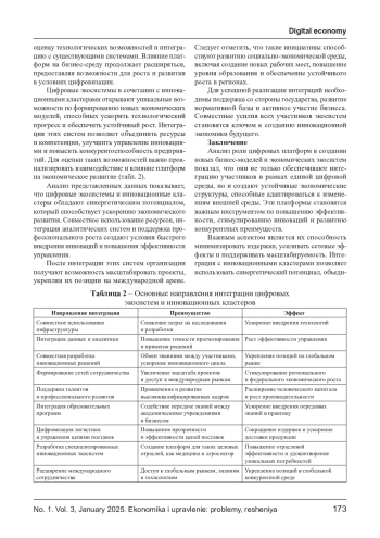 Целью исследования является анализ механизмов создания и функционирования цифровых платформ в контексте формирования новых бизнес-моделей и экономических экосистем, а также разработка рекомендаций по их интеграции в традиционные отрасли экономики. Исследование акцентирует внимание на изучении сетевых эффектов, масштабируемости и гибкости цифровых платформ, которые способствуют оптимизации процессов и повышению конкурентоспособности участников. Методология включает анализ современных подходов к определению концепций цифровых платформ, изучение их роли в экономическом развитии и исследование перспектив интеграции с инновационными кластерами. Основные результаты исследования демонстрируют, что цифровые платформы выступают катализаторами экономического роста, предоставляя участникам уникальные возможности для взаимодействия, оптимизации и генерации инновационных решений. Интеграция цифровых экосистем с инновационными кластерами позволяет ускорить внедрение передовых технологий, улучшить управление ресурсами и усилить позиции на глобальном рынке.
