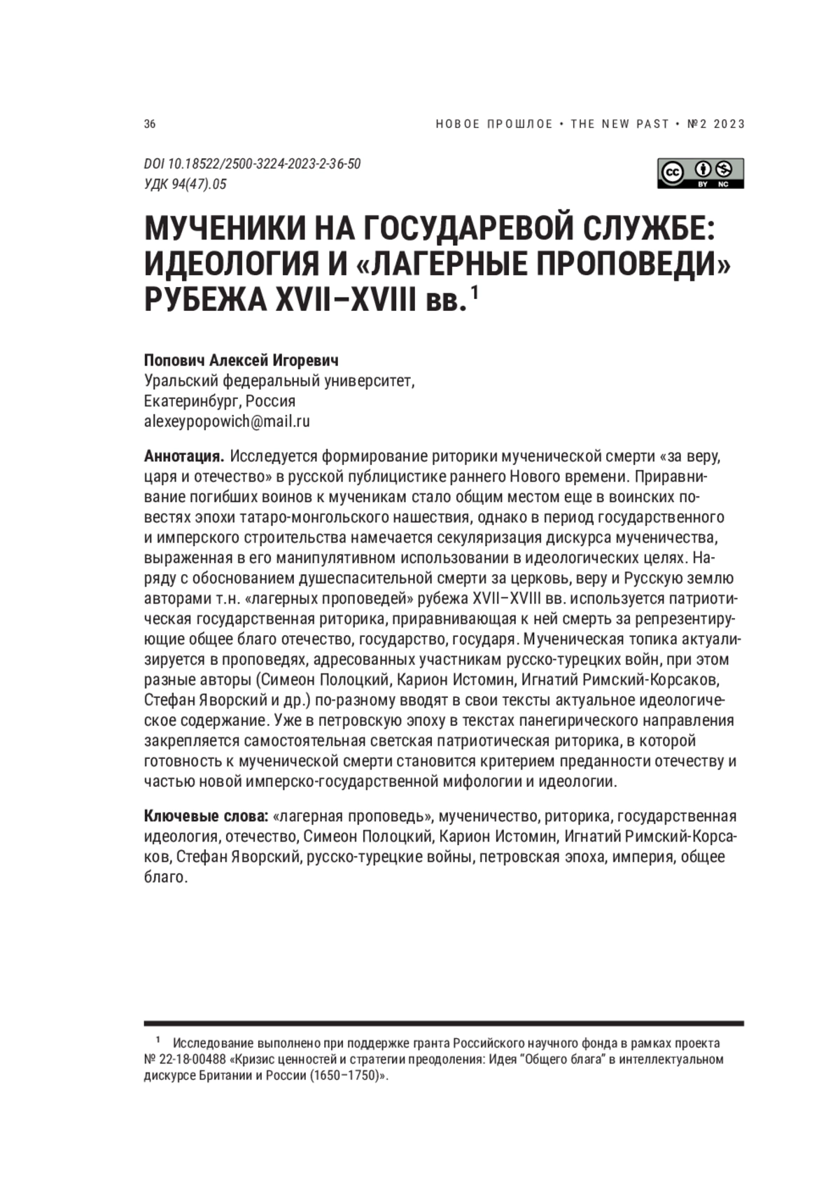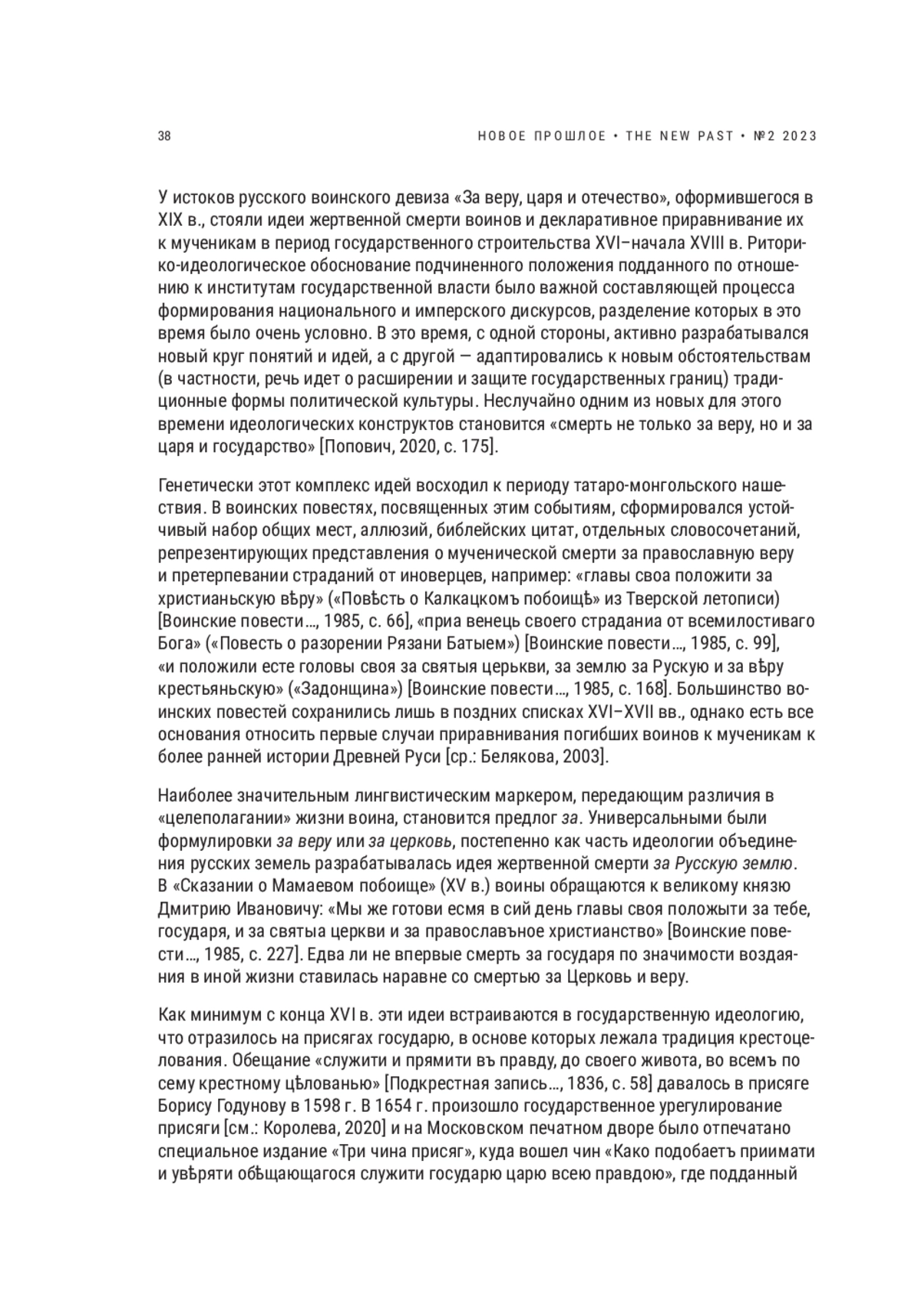 16. Попович А.И. Диктат власти и путь к личному выбору: идея жертвы за веру в России раннего Нового времени // Диалог со временем. 2020. Вып. 73. С. 168-180. DOI: 10.21267/AQUILO.2020.73.73.007 EDN: DRSSYI