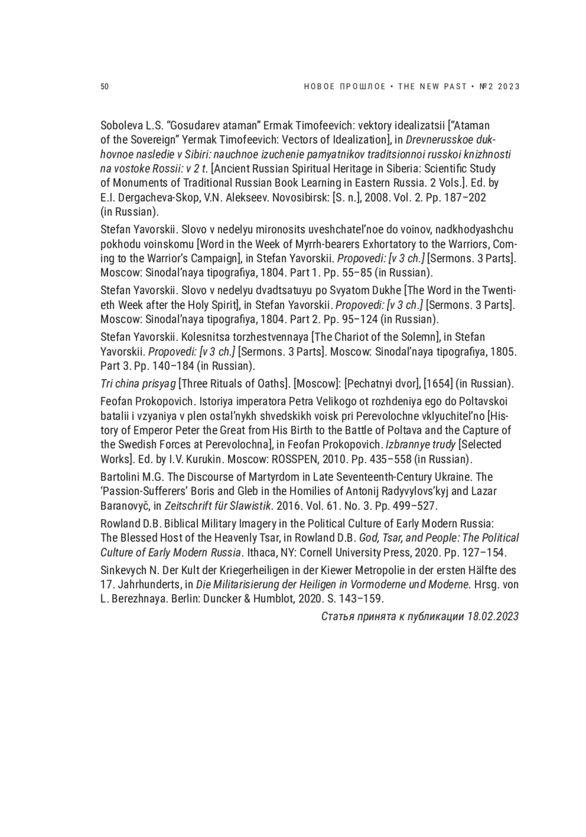 26. Rowland D.B. Biblical Military Imagery in the Political Culture of Early Modern Russia: The Blessed Host of the Heavenly Tsar // Rowland D.B. God, Tsar, and People: The Political Culture of Early Modern Russia. Ithaca, NY: Cornell University Press, 2020. P. 127-154.