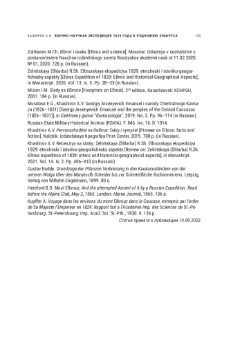 Статья: ВОЕННО-НАУЧНАЯ ЭКСПЕДИЦИЯ 1829 ГОДА К ПОДНОЖИЮ ЭЛЬБРУСА ПОД РУКОВОДСТВОМ Г. А. ЕМАНУЕЛЯ: ЗНАЧЕНИЕ, МИФЫ И РЕАЛИИ (2023)