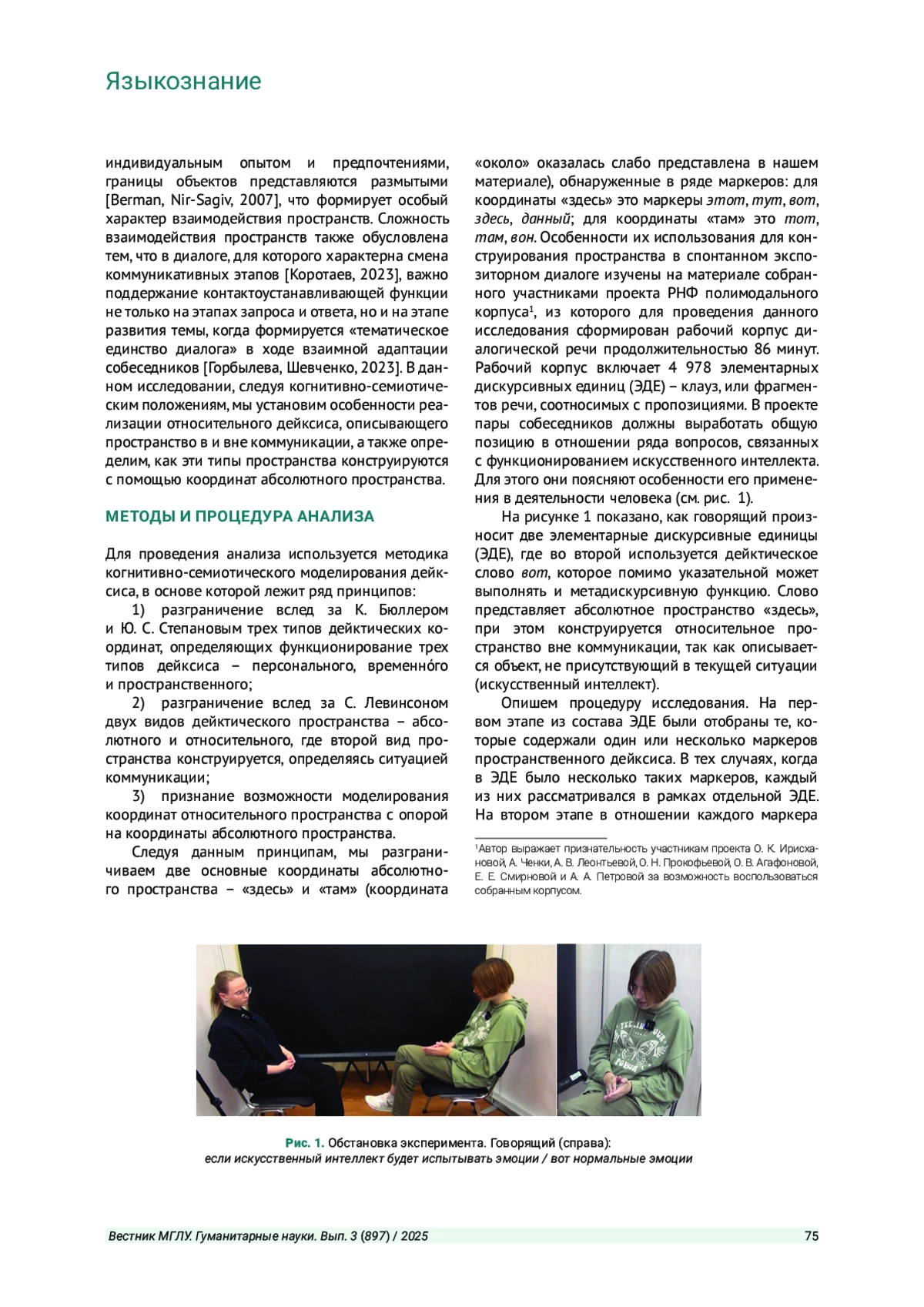 Статья: ПРОСТРАНСТВЕННЫЙ ДЕЙКСИС В СПОНТАННОМ ЭКСПОЗИТОРНОМ ДИАЛОГЕ: ЭКСПЕРИМЕНТАЛЬНОЕ ИССЛЕДОВАНИЕ (2025)