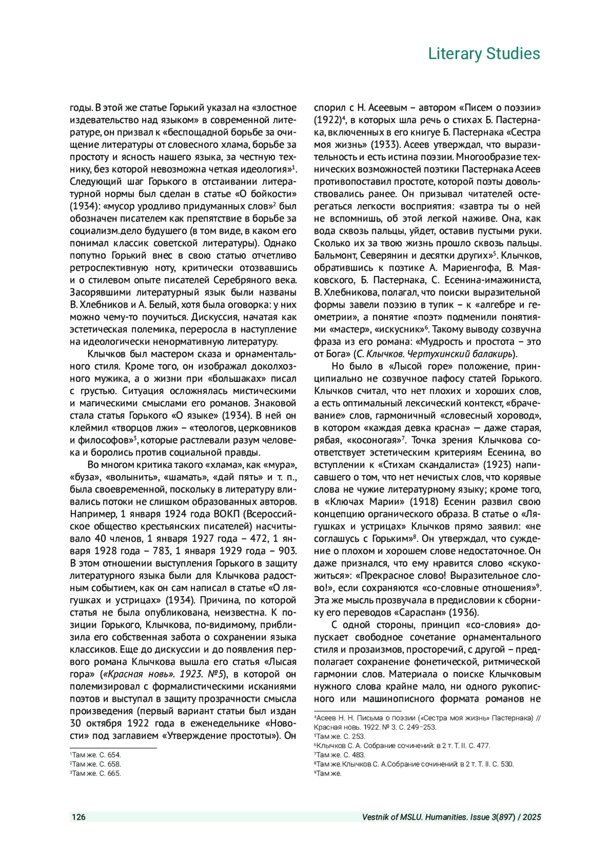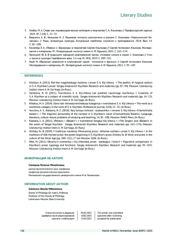 3. Хлебус М. А. Слово как мировоззренческая категория в творчестве С. А. Клычкова // Профессорский журнал. 2024. № 2 (18). С. 22-32.