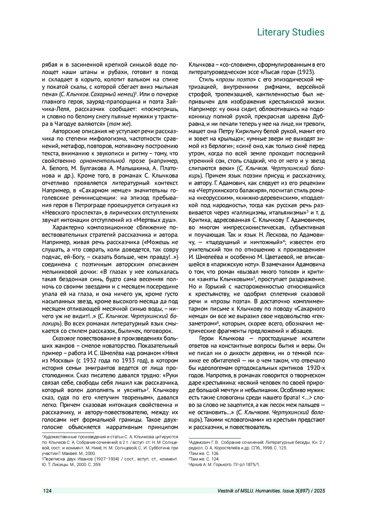 6. Орлицкий Ю. Б. В традициях народной рифмованной прозы: стиховое начало в прозе С. Клычкова // Стих и проза в культуре Серебряного века. 2-е изд. М.: ЯСК, 2019. С. 309-321.