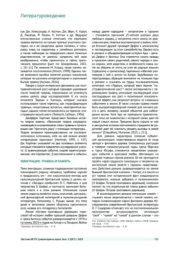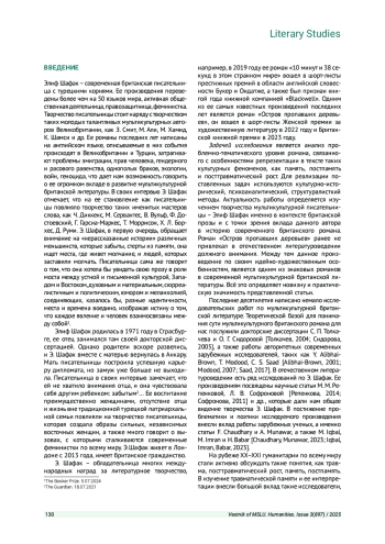 Ключевые фразы: элиф шафак, мультикультурный британский роман, ФЕМИНИЗМ, восток - запад, современная зарубежная проза, эмиграция, травма, посттравма, посттравматический рост