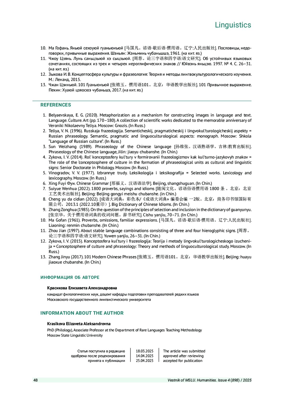 9. Чжан Цзунхуа. Гуаньюй сигуаньюнъюй цидянь дэ шоуци вэньти. [张宗华。关于惯用语词典的收词问题。辞书研究]. К вопросу о принципах отбора и включения в словарь гуаньюнъюев // Цишу яньцзю. 1985. № 5. С. 70-71. (на кит. яз.).