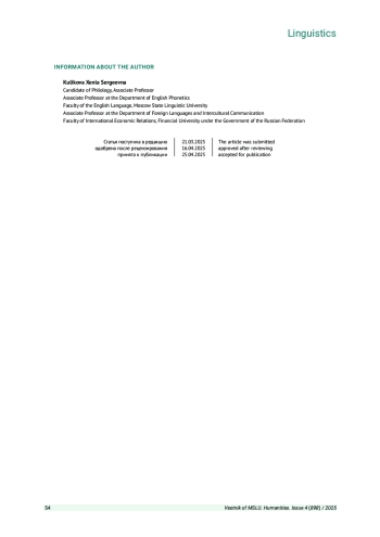 Журнал: ВЕСТНИК МОСКОВСКОГО ГОСУДАРСТВЕННОГО ЛИНГВИСТИЧЕСКОГО УНИВЕРСИТЕТА. ГУМАНИТАРНЫЕ НАУКИ