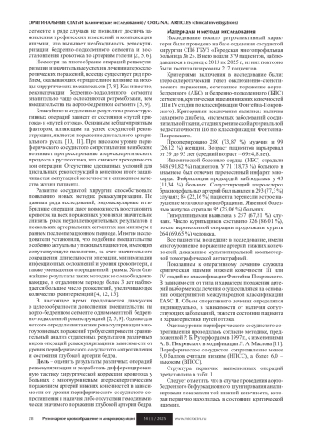 Статья: Выбор оптимальной тактики хирургического лечения при многоуровневых поражениях артерий нижних конечностей у пациентов с критической ишемией в зависимости от уровня периферического сосудистого сопротивления и состояния глубокой артерии бедра (2025)