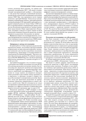 15. Скедина M. A., Ковалева А. А., Носовский А. М. Анализ показателей кровотока в микроциркуляторном русле кожи человека и их связь с показателями центральной гемодинамики // Регионарное кровообращение и микроциркуляция. 2020. Т. 19, №4. C. 76-86.