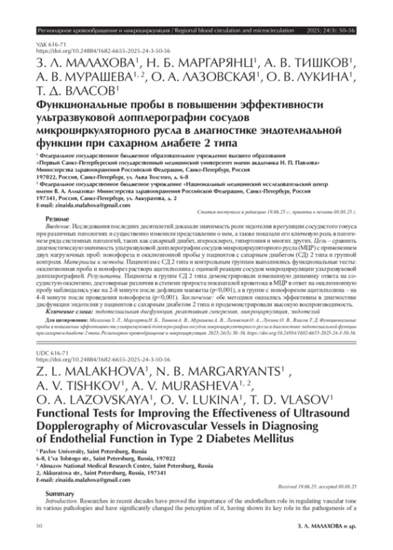 11. Малахова З. Л., Амосов В. И., Власов Т. Д. Плюсы и минусы поток-зависимой вазодилатации плечевой артерии // Клиническая патофизиология. 2024. Т. 30, № S2. С. 78.