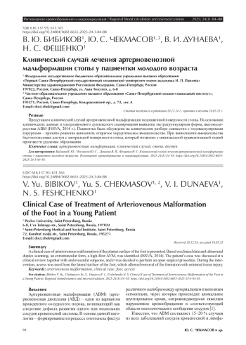 7. Кондрашин С. А., Серова Н. С., Кобликов В. В., Кузьменков Д. В. Артериовенозная мальформация стопы: диагностика и эндоваскулярное лечение // Российский электронный журнал лучевой диагностики. 2015. Т. 5, №2. С. 62-66.