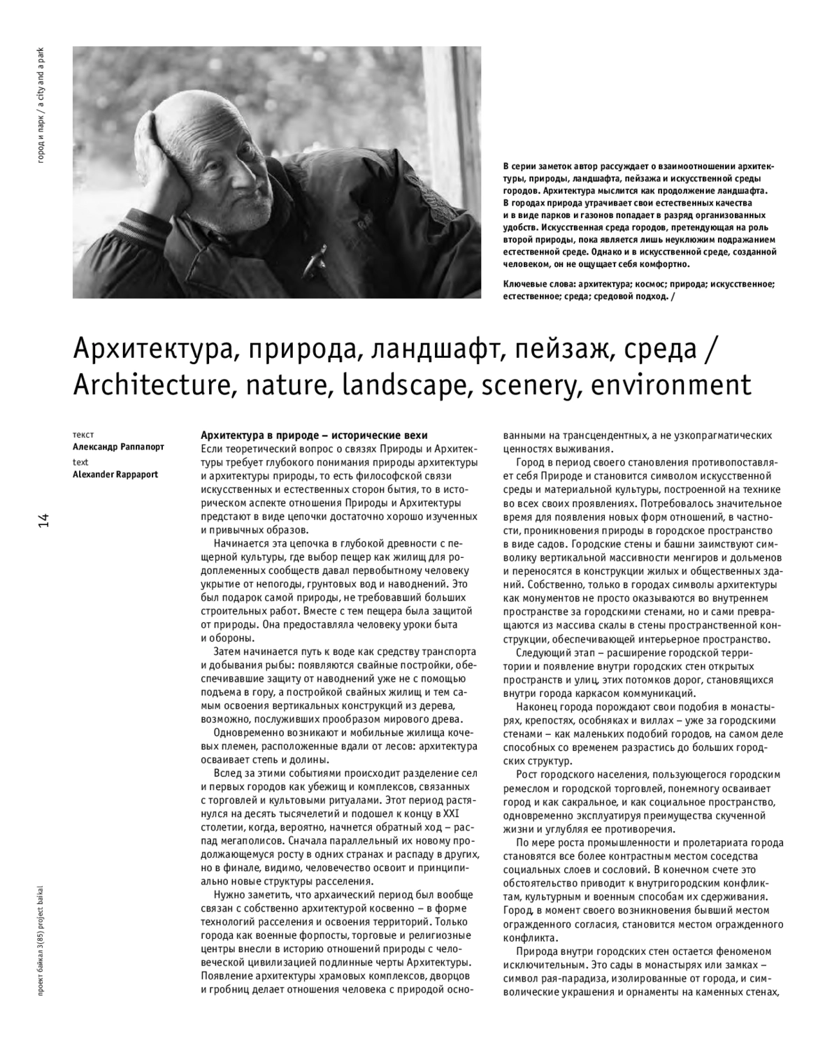 РАППАПОРТ А. АРХИТЕКТУРА, ПРИРОДА, ЛАНДШАФТ, ПЕЙЗАЖ, СРЕДА // ПРОЕКТ БАЙКАЛ. 2025. № 85, ТОМ 22