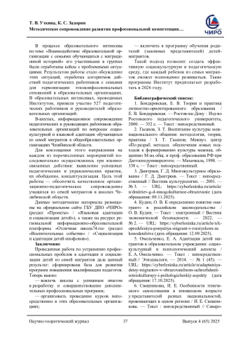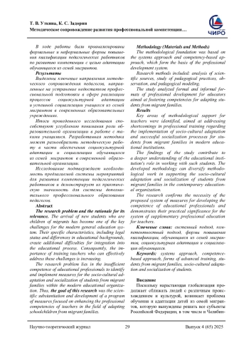 Статья: МЕТОДИЧЕСКОЕ СОПРОВОЖДЕНИЕ РАЗВИТИЯ ПРОФЕССИОНАЛЬНОЙ КОМПЕТЕНЦИИ ПЕДАГОГИЧЕСКИХ РАБОТНИКОВ ПО АДАПТАЦИИ И СОЦИАЛИЗАЦИИ ОБУЧАЮЩИХСЯ ИЗ СЕМЕЙ МИГРАНТОВ (2025)
