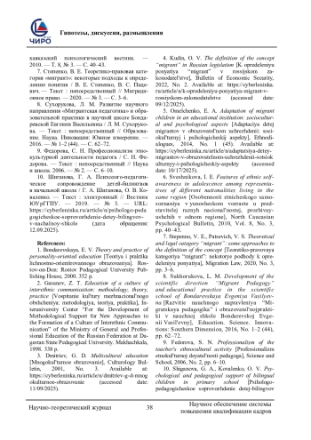 Ключевые фразы: системный подход, компетентностный подход, формы повышения квалификации, обучающиеся из семей мигрантов, социокультурная адаптация и социализация обучающихся