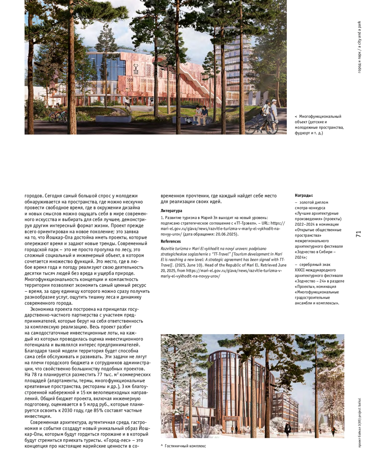 Описывается центр города Йошкар-Олы с ее уникальным, но местами проблематичным архитектурным обликом, который в свое время поспособствовал развитию туризма. В ответ на назревшие проблемы местный бизнес инициировал проект, получивший название «Город-лес». Концепция направлена на интеграцию марийской идентичности и возвращение лесных мотивов в городскую среду. Одной из ключевых особенностей проекта является предпринимательская модель развития территории.