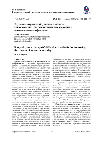 Проблема исследования и обоснование ее актуальности. Проблема, представленная в статье, обусловлена возникающим противоречием между необходимостью обеспечения качественного процесса повышения квалификации и переподготовки учителя-логопеда и возникающими трудностями в осуществлении коррекционной работы. Статья содержит результаты изучения возникающих организационных и содержательных несоответствий, которые часто являются проблемой в решении вопроса преемственности в период повышения квалификации и переподготовки учителей-логопедов с разным стажем работы. Анализируются и сравниваются знаниевые потребности современного учителя-логопеда и требования современных образовательных учреждений разных ступеней. В ходе изучения данной проблемы предлагается совершенствование процесса повышения квалификации и переподготовки в области логопедии на основе рассмотрения и исследования вопросов преемственности различных ступеней образования, различных типов образовательных организаций и выделения общих и специфических трудностей в реализации коррекционно-развивающей работы. Автором предлагаются некоторые пути решения данной проблемы посредством усовершенствования организации и содержания курсов повышения квалификации и переподготовки учителей-логопедов, дефектологов Владимирской области. Предлагается внедрение в практику обучения проведение тематических кратковременных курсов, направленных на рассмотрение выявленных проблемных вопросов и дающих ответ на эти вопросы по преемственности в работе. В процессе обучения на данных курсах педагог самостоятельно осуществляет выбор и находит решения практико-ориентированных, интерактивных заданий. Целью исследования является определение перспектив научно-методического сопровождения и обеспечения непрерывного повышения квалификации учителей-логопедов с позиции рассмотрения вопроса преемственности. Задачи исследования включают сравнительный анализ многолетней работы по реализации сотрудниками Владимирского института повышения квалификации ФГОС для детей с ОВЗ различных ступеней и типов образования. Методология исследования опирается на системно-деятельностный и компетентностный подходы, позволяющие осуществлять индивидуализацию и дифференциацию обучения как детей, так и педагогов, опираясь на личный опыт педагога, вовлекая его в комфортное взаимодействие с коллегами и основываясь на принципах осуществления преемственных связей обучения, формируя основные компетенции современного учителя-логопеда. Результаты. Теоретическая значимость исследования состоит в том, что путем сравнительного анализа изучения вопроса преемственности в процессе переподготовки и повышения квалификации современного учителя-логопеда определены теоретические и практико-ориентированные дефициты. Практическая значимость заключается в подготовке и создании дополнительных программ, позволяющих углублять и совершенствовать процесс переподготовки и повышения квалификации педагогов.