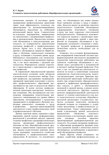 Проблема исследования и обоснование ее актуальности. В статье обращается внимание на проблему подготовки педагогических работников общеобразовательных организаций к содействию обучающимся в профессиональном самоопределении. Данное направление непрерывного профессионального развития педагогических работников рассматривается в контексте развития системы дополнительного профессионального образования. Актуализируется проблема обновления психолого-педагогических знаний и совершенствования методических компетенций педагогических работников, способствующих повышению эффективности профессиональной ориентации школьников. Отмечается, что в условиях внедрения профильного образования расширяются функции педагога в развитии знаний и личностных качеств обучающихся, востребованных в предпочитаемой обучающимися профессии. Это требует уточнения представлений о целевом результате повышения квалификации педагога, рассматриваемого в статье как готовность педагога к содействию обучающимся в профессиональном самоопределении и выборе будущей профессии. В связи с этим ставится цель обосновать и проинтерпретировать готовность педагогических работников общеобразовательных организаций к содействию обучающимся в профессиональном самоопределении и выборе будущей профессии как системное педагогическое понятие. Основными методами исследования являются: анализ, обобщение и синтез существующих подходов к интерпретации представлений об изучаемой готовности. В основу методологии настоящей статьи положена концепция непрерывного профессионального развития. Концептуальные представления о готовности специалистов системы общего образования к новым видам профессиональной педагогической деятельности. Представления о педагогическом содействии как образовательной стратегии. Представление основного результата отвечает основной цели статьи и определяет ее научную новизну. Полученный результат состоит в интерпретации, системном представлении и структурном описании понятия готовности педагогических работников общеобразовательных организаций к содействию обучающимся в профессиональном самоопределении и выборе будущей профессии. Теоретическая значимость связывается с обогащением представлений о профессионально значимых качествах педагога, обеспечивающих достижение обучающимися успешности в определении перспектив жизненного и профессионального развития. Практическая значимость предполагает возможность применения полученных результатов для разработки диагностического инструментария, позволяющего выявлять степень выраженности изучаемой готовности, в определении направлений обновления содержания и способов повышения квалификации педагогических работников в контексте их подготовки к содействию обучающимся в профессиональном самоопределении и выборе будущей профессии.