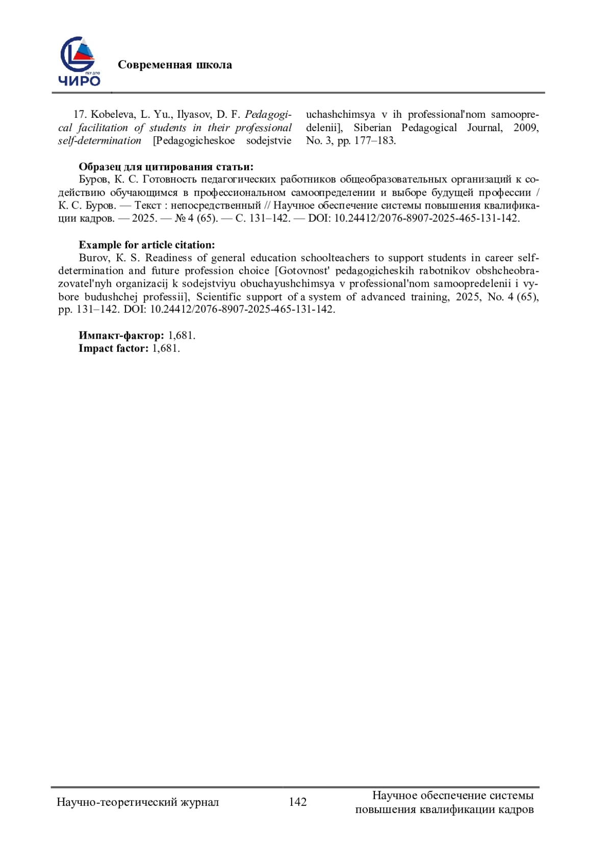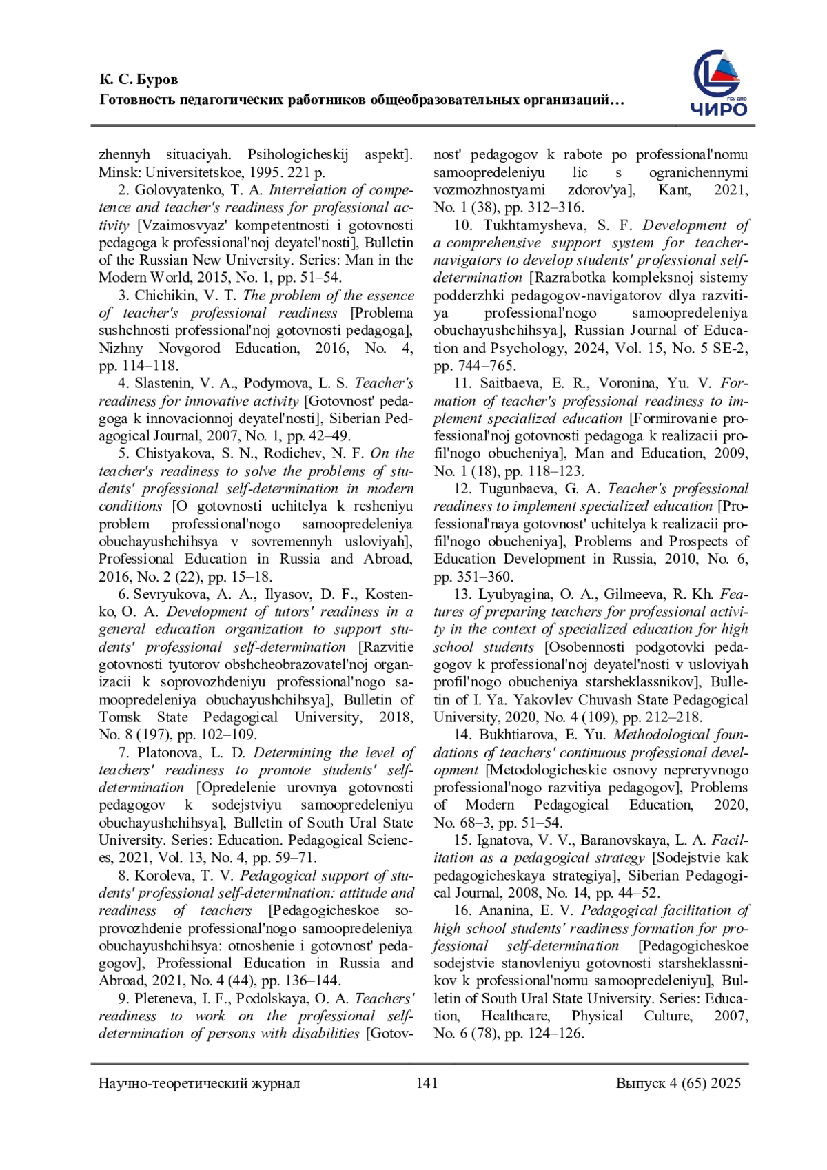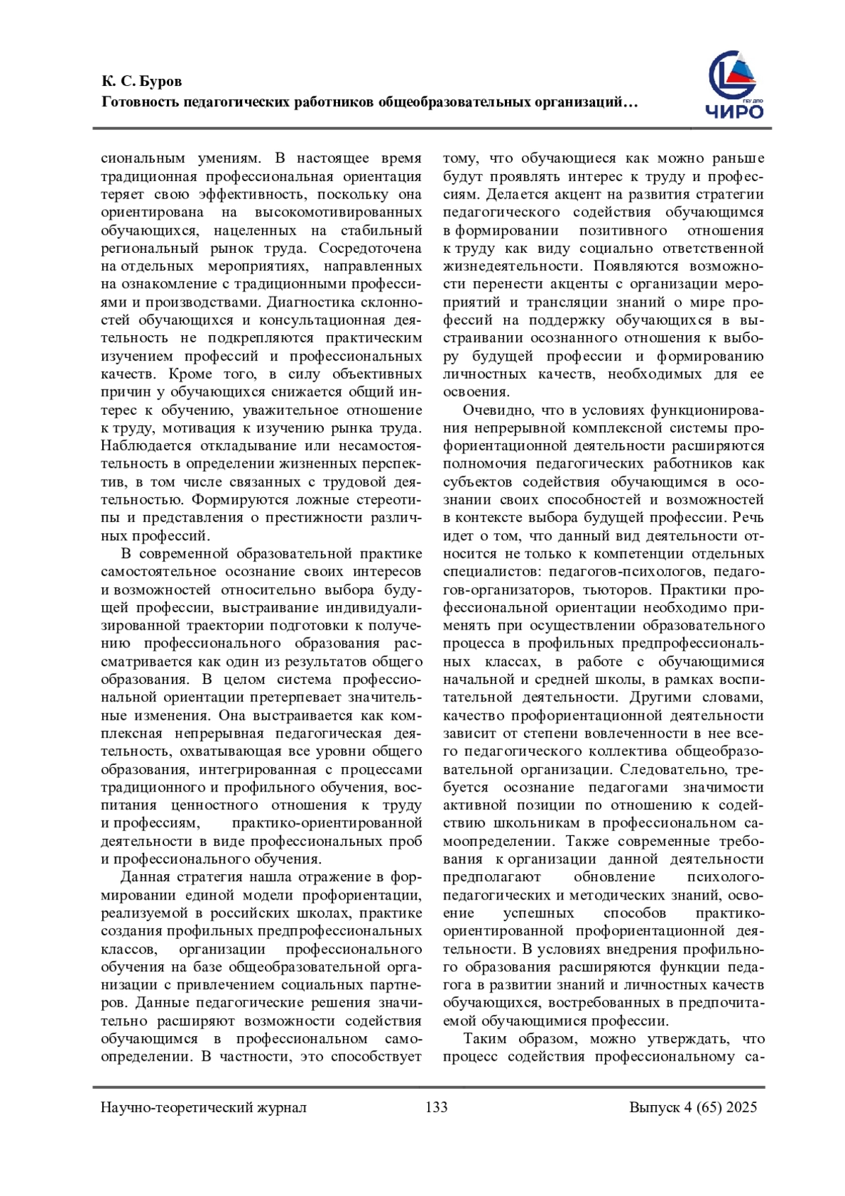 Проблема исследования и обоснование ее актуальности. Проблема исследования заключается в необходимости обновления содержания дополнительного профессионального образования для подготовки педагогических и руководящих работников школ к эффективной реализации профильного образования в соответствии с региональными стратегическими ориентирами (на примере стратегии «ТЕМП 74» в Челябинской области). Системе дополнительного профессионального образования педагогических работников необходимо реализовывать динамичные изменения в сфере общего образования. Выявлено противоречие между требованием к реализации эффективного профильного обучения в школах и недостаточным уровнем готовности педагогов к этой деятельности, что обусловлено не в полной мере отвечающим современным вызовам содержанием программ повышения квалификации. Необходимо формировать у педагогов практические компетенции для проектирования и реализации индивидуальных образовательных траекторий в условиях профилизации. Цель исследования состоит в разработке и представление дополнительной профессиональной программы повышения квалификации, направленной на совершенствование профессиональных компетенций школьных команд в сфере организации профильного обучения, профориентации и профессионального обучения. Методологической основой работы стала разработка модульной программы повышения квалификации, сочетающей инвариантные (нормативно-правовые, психолого-педагогические, организационные основы) и вариативные модули (для руководителей и педагогов). Методы реализации включают лекции, практические занятия, стажировки, проектирование и использование активных методов обучения с опорой на региональный опыт. В основу исследования положен деятельностный, проектный и ресурсный подходы. Использован комплекс теоретических методов: анализ психолого-педагогической и научно-методической литературы по проблеме профильного обучения и дополнительного профессионального образования, изучение педагогического опыта, моделирование. В результате создана комплексная программа, структура и содержание которой обеспечивают формирование у слушателей компетенций, необходимых для реализации профильного образования. Программа интегрирует региональный компонент («ТЕМП 74»), знакомит с современными инструментами (цифровые платформы, профориентационные онлайн-ресурсы) и носит практико-ориентированный характер. Заключение: разработанная программа повышения квалификации имеет свой значительный потенциал для подготовки педагогов в области профильного образования. Ключевой задачей на перспективу признано повышение мотивации и вовлеченности самих педагогических и руководящих работников к реализации данной образовательной стратегии. Содержание программы основано на принципах практико-ориентированности, индивидуализации и системности, что является ключевым условием эффективной подготовки педагогических коллективов к реализации профильного образования. Формирует у педагогов не только понимание сути профилизации, но и конкретные умения (технологии, методы, средства) для ее реализации, что в конечном итоге повышает качество образовательных результатов школьников.