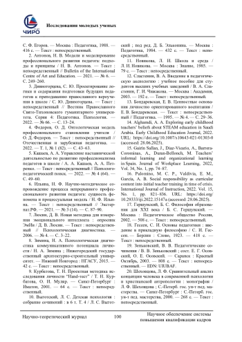 2. Антонов, Н. В. Модели и моделирование профессионального развития педагога: подходы и принципы / Н. В. Антонов. - Текст: непосредственный // Bulletin of the International Centre of Art and Education. - 2021. - № 6. - С. 249-260. EDN: MMJNCE