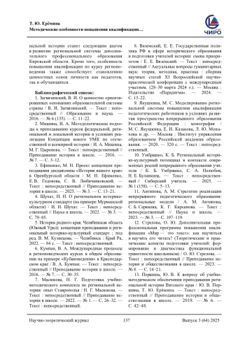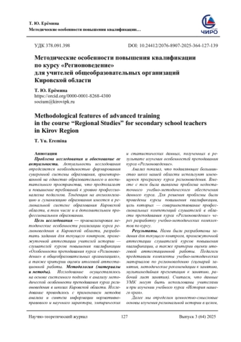 Статья: МЕТОДИЧЕСКИЕ ОСОБЕННОСТИ ПОВЫШЕНИЯ КВАЛИФИКАЦИИ ПО КУРСУ «РЕГИОНОВЕДЕНИЕ» ДЛЯ УЧИТЕЛЕЙ ОБЩЕОБРАЗОВАТЕЛЬНЫХ ОРГАНИЗАЦИЙ КИРОВСКОЙ ОБЛАСТИ (2025)
