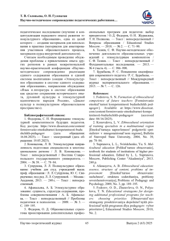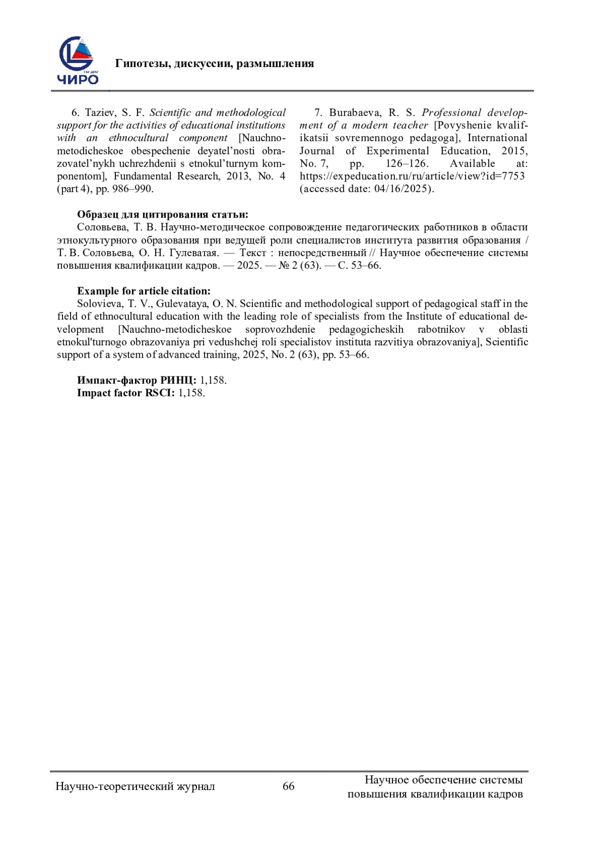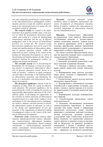 СОЛОВЬЕВА Т. В., ГУЛЕВАТАЯ О.Н. НАУЧНО-МЕТОДИЧЕСКОЕ СОПРОВОЖДЕНИЕ ПЕДАГОГИЧЕСКИХ РАБОТНИКОВ В ОБЛАСТИ ЭТНОКУЛЬТУРНОГО ОБРАЗОВАНИЯ ПРИ ВЕДУЩЕЙ РОЛИ СПЕЦИАЛИСТОВ ИНСТИТУТА РАЗВИТИЯ ОБРАЗОВАНИЯ // НАУЧНОЕ ОБЕСПЕЧЕНИЕ СИСТЕМЫ ПОВЫШЕНИЯ КВАЛИФИКАЦИИ КАДРОВ. 2025. № 2 (63) (14 СТ.)