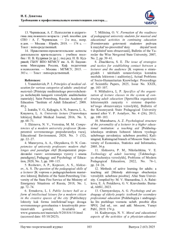 3. Екимова, Н. В. Компетенции современного преподавателя вуза / Н. В. Екимова, М. М. Воронина. - Текст: непосредственный // Образовательная среда. - 2020. - № 3 (32). - С. 22-27.