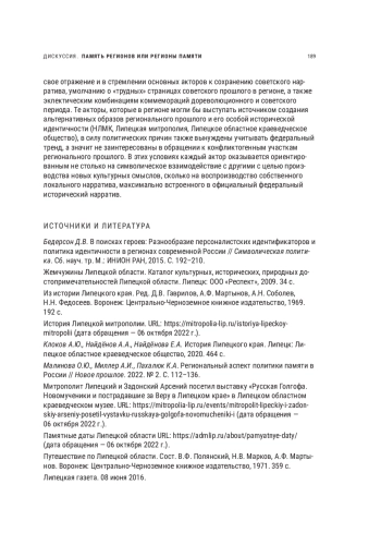 5. Клоков А.Ю., Найдёнов А.А., Найдёнова Е.А. История Липецкого края. Липецк: Липецкое областное краеведческое общество, 2020. 464 с. EDN: RRXATK