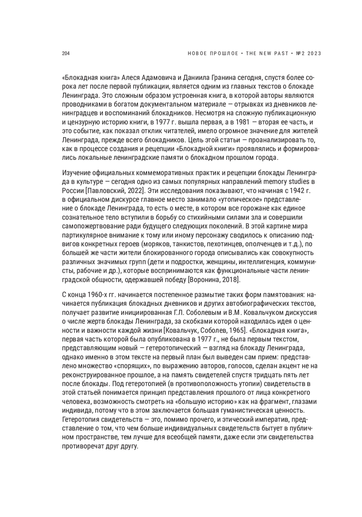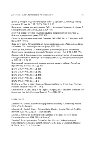 11. Павловский А.Ф. Культурная травма и современная историография: “Вторая волна” исследований памяти о блокаде Ленинграда (2016-2021) // Историческая экспертиза. 2022. № 1. С. 26-29.