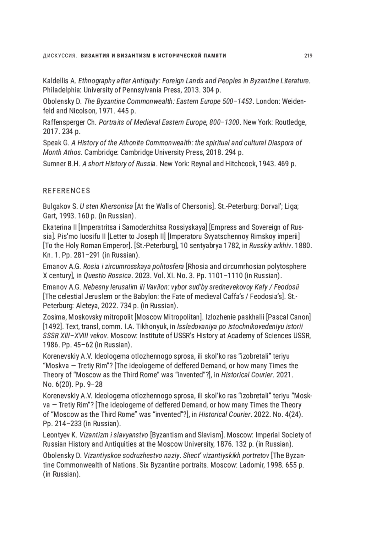 20. Emanov A. Les paradigms de la culture byzantine et la Russie post-byzantine. In Chroniques slaves. Grenoble, 2005. № 1. Pp. 81-90.