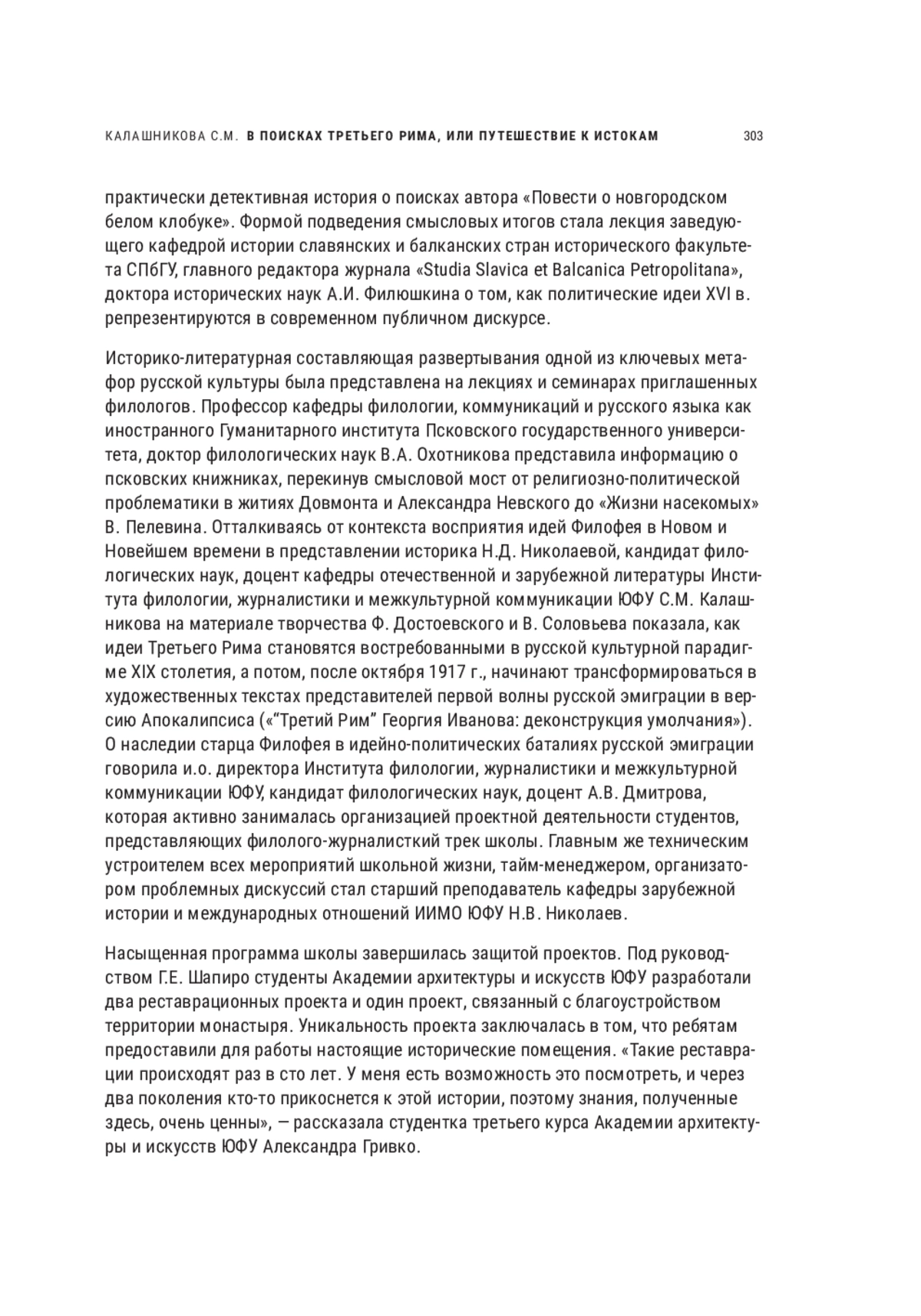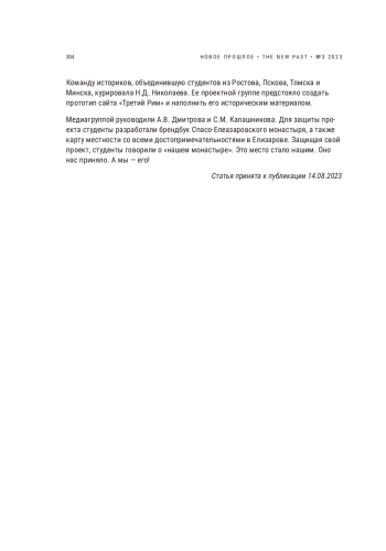 КАЛАШНИКОВА С. М. В ПОИСКАХ ТРЕТЬЕГО РИМА, ИЛИ ПУТЕШЕСТВИЕ К ИСТОКАМ // НОВОЕ ПРОШЛОЕ. 2023. № 3